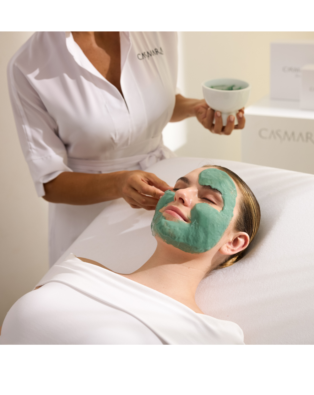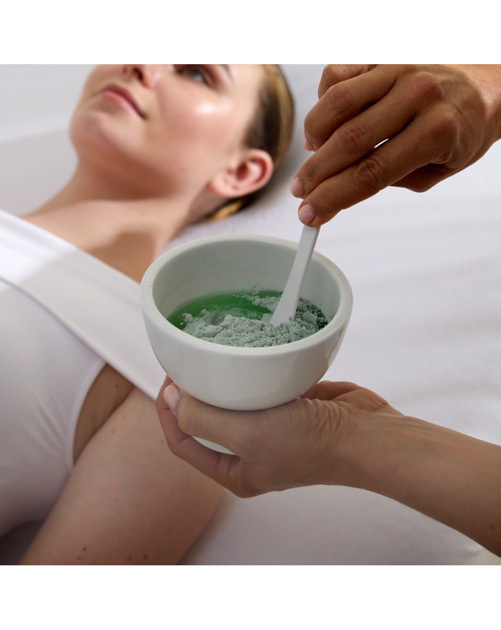Mélanger le contenu de Gel et le contenu de Poudre dans un bol, de façon homogène à l’aide d’une spatule. Appliquer le masque, laisser agir 20 minutes et le retirer en une seule pièce.